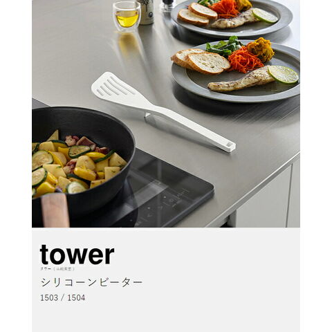 [ シリコーンビーター タワー ]山崎実業 tower フライ返し 食洗機対応 耐熱 ターナー シリコン キッチンツール キッチン雑貨 調理器具 料理 調理台 台所 料理 北欧 おしゃれ yamazaki 公式 モノトーン