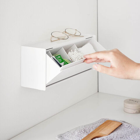 [ ウォール洗面収納ケース タワー 石こうボード壁対応 ] 山崎実業 tower 収納ボックス フラップ式 フラップ扉 ラック 卓上 仕切り付き 洗面 収納 壁面収納 北欧 おしゃれ モノトーン yamazaki 公式