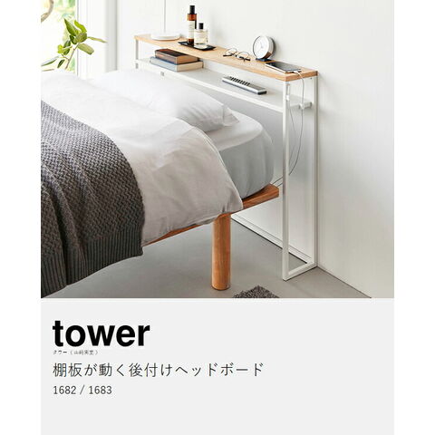 [ 棚板が動く後付けヘッドボード タワー ] 山崎実業 tower 後付け ヘッドボード 高さ調節 シングルベッド ラック 宮棚 枕元 収納 コンソールテーブル ディスプレイラック おしゃれ yamazaki 公式