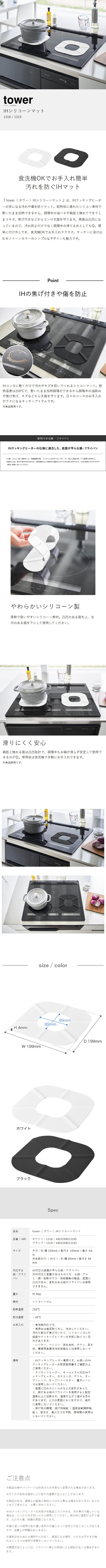 [ IHシリコーンマット タワー ] 山崎実業 tower IHマット IH 焦げ防止 マット 保護 IHクッキングヒーター カバー 汚れ防止 シリコン 焦げ対策 掃除 食洗器対応 おしゃれ モノトーン yamazaki 公式