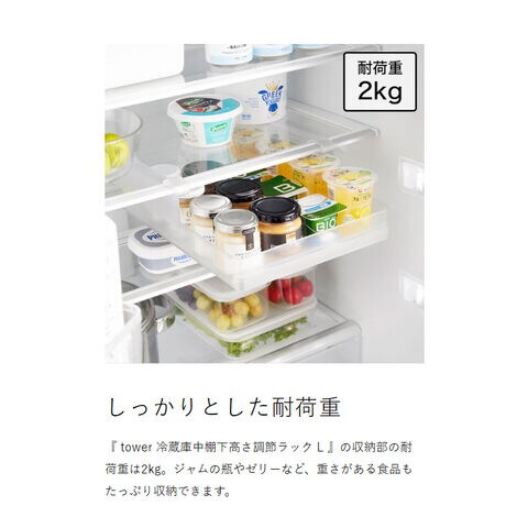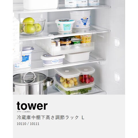 [ 冷蔵庫中棚下高さ調節ラック タワー L ]山崎実業 tower 冷蔵庫収納トレー 引き出し ラック すきま 隙間 収納 吊り下げ 高さ 調節 スライド棚 冷蔵庫 冷蔵庫収納グッズ 冷蔵庫収納ケース おしゃれ yamazaki 公式 モノトーン
