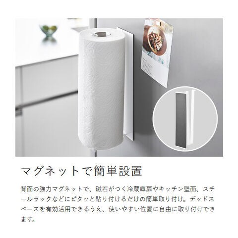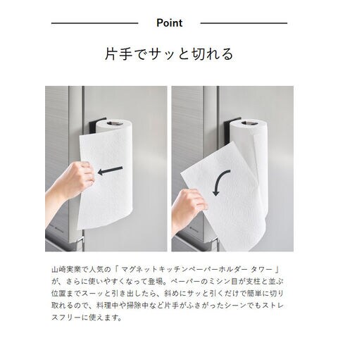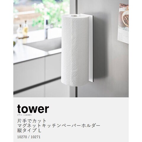 [ 片手でカットマグネットキッチンペーパーホルダー タワー 縦タイプ L ]山崎実業 tower キッチンペーパーホルダー 片手で切れる マグネット 磁石 浮かせる収納 台所 キッチン 大判 コストコ 北欧 おしゃれ yamazaki 公式