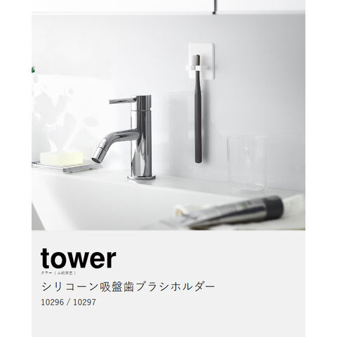 [ シリコーン吸盤歯ブラシホルダー タワー ] 山崎実業 tower 歯ブラシホルダー 吸盤 貼ってはがせる 歯ブラシ 収納 おしゃれ シェーバーホルダー 吸着 はぶらし 浮かせる おしゃれ お風呂 洗面所 バスルーム yamazaki 公式