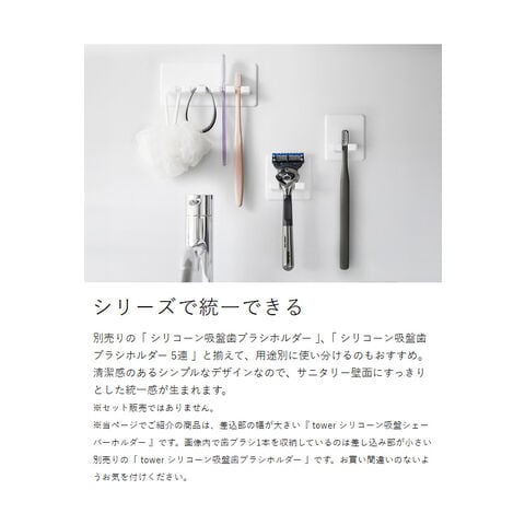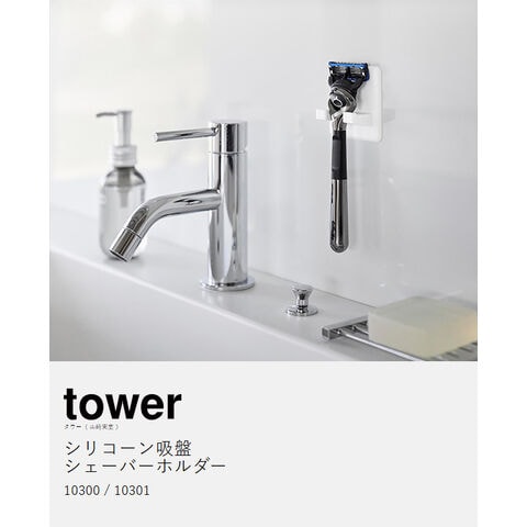 [ シリコーン吸盤シェーバーホルダー タワー ] 山崎実業 tower シェーバーホルダー 吸盤 貼ってはがせる 髭剃り ひげそり 収納 おしゃれ ホルダー 吸着 浮かせる 洗面所 おしゃれ お風呂 壁面 バスルーム yamazaki 公式