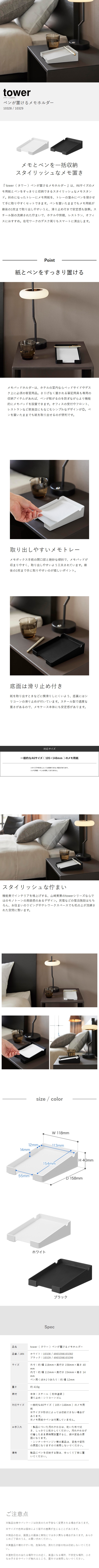 [ ペンが置けるメモホルダー タワー ]山崎実業 tower メモトレイ ペンホルダー ホテル A6 メモパッド メモブック ホテル仕様 宿泊施設 商業施設 フロント 受付 おしゃれ モノトーン yamazaki 公式