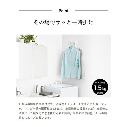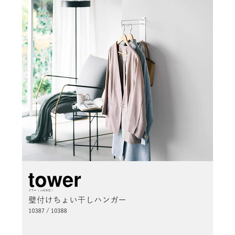 [ 壁付けちょい干しハンガー タワー ]山崎実業 tower 部屋干し ハンガー 物干し グッズ 室内干し 洗濯 洗面所 ランドリールーム 壁付け 壁掛け 壁面 石膏ボード コートハンガー 省スペース 北欧 おしゃれ yamazaki 公式