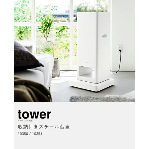 [ 収納付きスチール台車 タワー ]山崎実業 tower 平台車 キャスター付き 正方形 スリム コンパクト 耐荷重 30kg 配線通し口 収納付 押入れ収納 ドリー 鉢置き 北欧 おしゃれ モノトーン yamazaki 公式