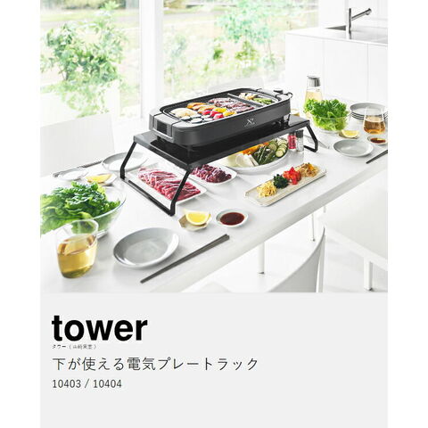 [ 下が使える電気プレートラック タワー ] 山崎実業 tower ホットプレート 置き 折り畳み 卓上 ラック スタンド 焼肉 テーブル 折りたたみ ホームパーティー 鍋 おしゃれ モノトーン yamazaki 公式
