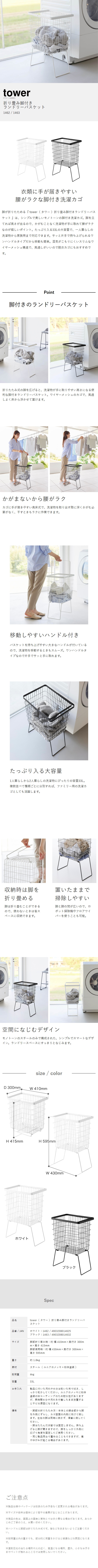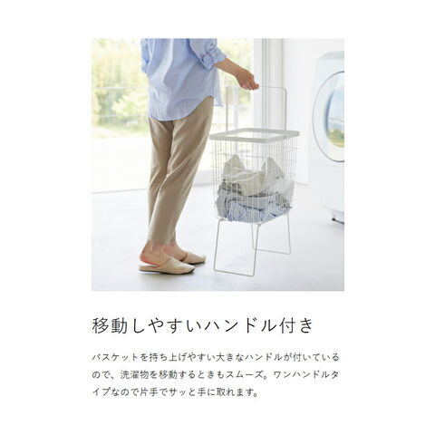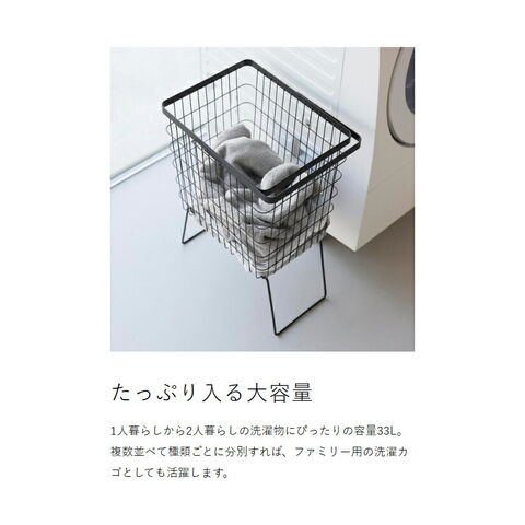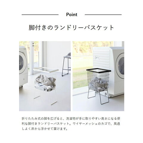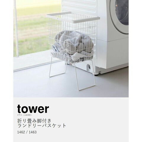 [ 折り畳み脚付きランドリーバスケット タワー ] 山崎実業 tower ランドリーバスケット 脚付 大容量 洗濯かご 33L 洗濯物入れ 洗濯カゴ 洗濯籠 ワイヤー メッシュ スリム おしゃれ yamazaki 公式