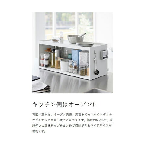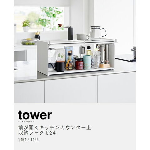 [ 前が開くキッチンカウンター上収納ラック タワー D24 ] 山崎実業 tower 調味料ラック キッチン収納 ブレッドケース フラップ扉 ストッカー 調味料ストッカー おしゃれ モノトーン yamazaki 公式