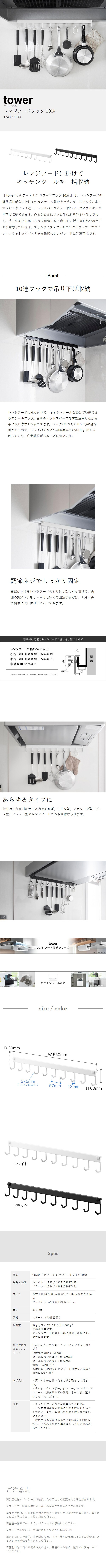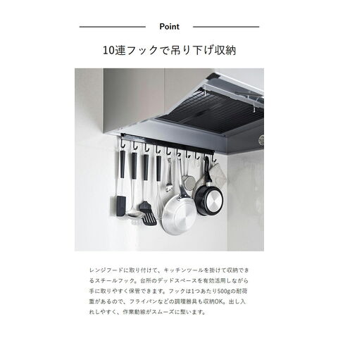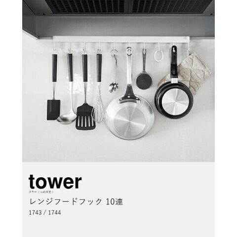[ レンジフードフック タワー 10連 ] 山崎実業 tower レンジフード フック キッチン収納 吊り下げ 10本 キッチンツールフック キッチンツールホルダー 北欧 おしゃれ モノトーン yamazaki 公式