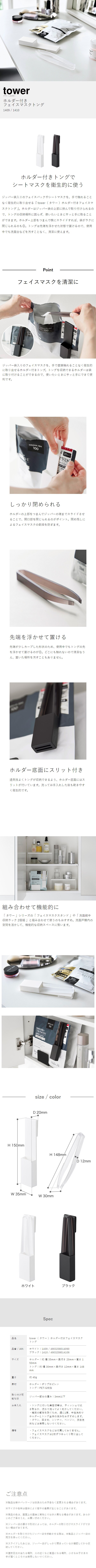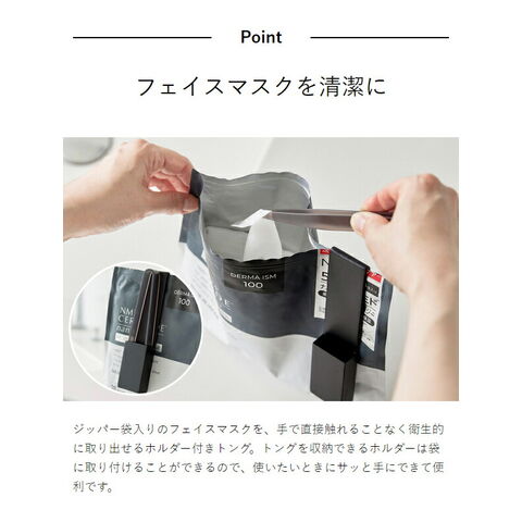 [ ホルダー付きフェイスマスクトング タワー ]山崎実業 tower フェイスマスク用トング ジッパー袋スライダー 洗面戸棚 洗面台 洗面所 シートマスク フェイスパック トング 北欧 おしゃれ yamazaki 公式 モノトーン