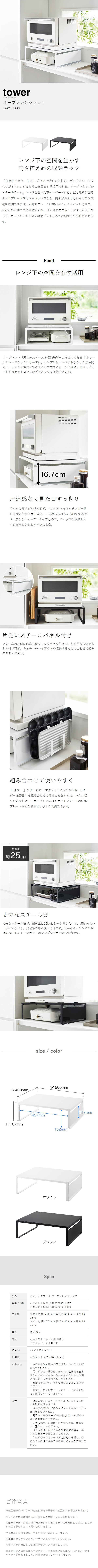 [ オーブンレンジラック タワー ]山崎実業 tower 幅50 奥行40 レンジ下収納 家電下収納 ラック 棚 カウンター上 レンジ台 電子レンジ キッチン収納 ホットプレート カセットコンロ 北欧 おしゃれ yamazaki 公式 モノトーン