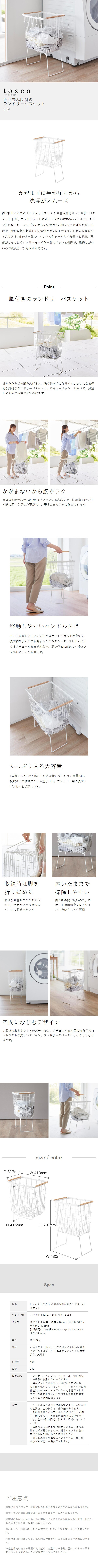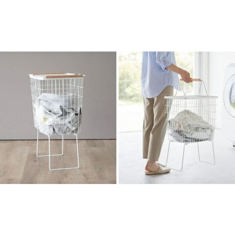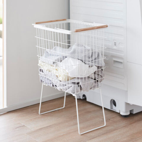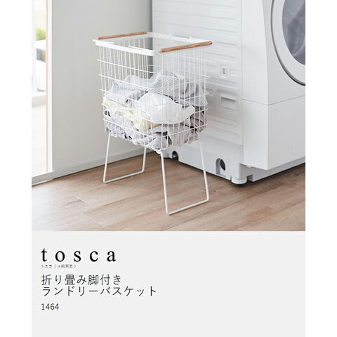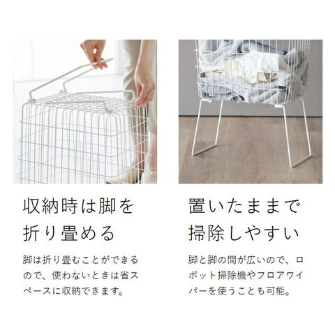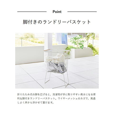 [ 折り畳み脚付きランドリーバスケット トスカ ] 山崎実業 tosca ランドリーバスケット 脚付 大容量 洗濯かご 折りたたみ 33L 洗濯物入れ 洗濯カゴ 洗濯籠 ワイヤー メッシュ スリム 北欧 おしゃれ yamazaki 公式