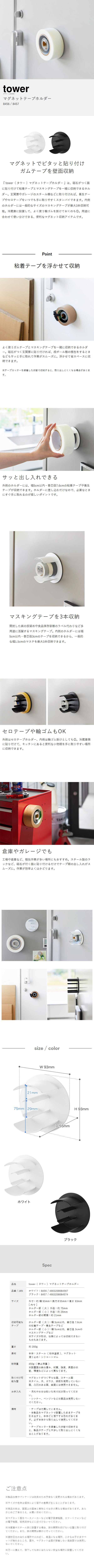 [ マグネットテープホルダー タワー ]山崎実業 tower 幅広 接着テープ ガムテープ 養生テープ マグネット 粘着テープ マスキングテープ マステ 磁石 ホルダー 冷蔵庫 玄関扉 ガレージ シンプル おしゃれ モノトーン yamazaki 公式