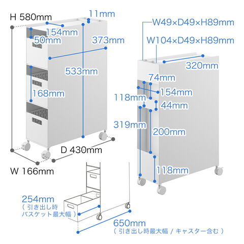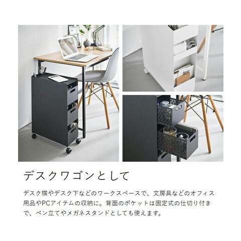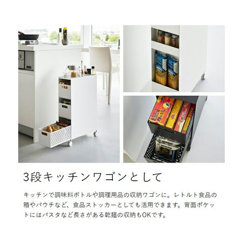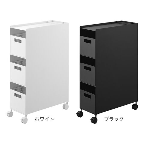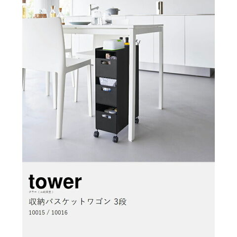 [ 収納バスケットワゴン タワー 3段 ] 山崎実業 tower キッチンワゴン バスケット ワゴン キャスター付き スチールワゴン 引き出し キッチン収納 リビング 北欧 おしゃれ モノトーン yamazaki 公式