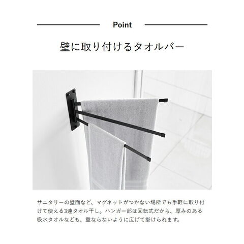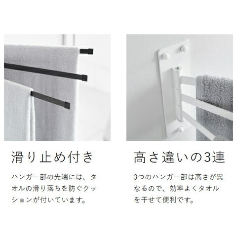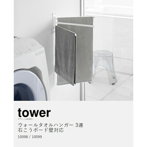 [ ウォールタオルハンガー タワー 3連 石こうボード壁対応 ] 山崎実業 tower タオルハンガー タオル掛け 洗面所 壁 タオルバー 3枚 タオル 干し 3段 収納 三連 おしゃれ モノトーン yamazaki 公式
