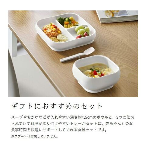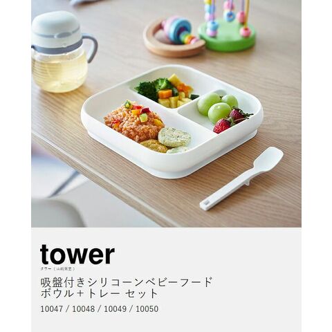 [ 吸盤付きシリコーンベビーフードボウル + 吸盤付きシリコーンベビーフードトレー タワー ]山崎実業 tower ベビー食器セット すくいやすい シリコン 吸盤付き ベビー食器 出産祝い おしゃれ yamazaki 公式 モノトーン