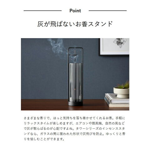 [ お香スタンド タワー 灰飛び防止カバー付き ]山崎実業 tower お香立て 線香立て ガラス イノセンスホルダー アロマスティック お香 吊り下げ お香たて バンブーインセンス シンプル 北欧 おしゃれ yamazaki 公式 モノトーン
