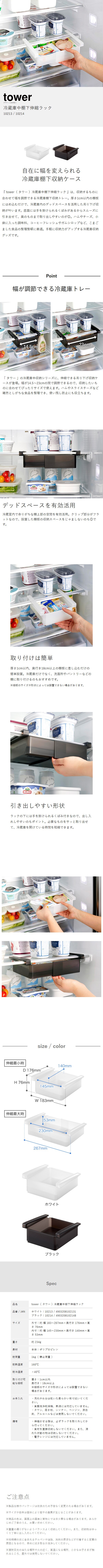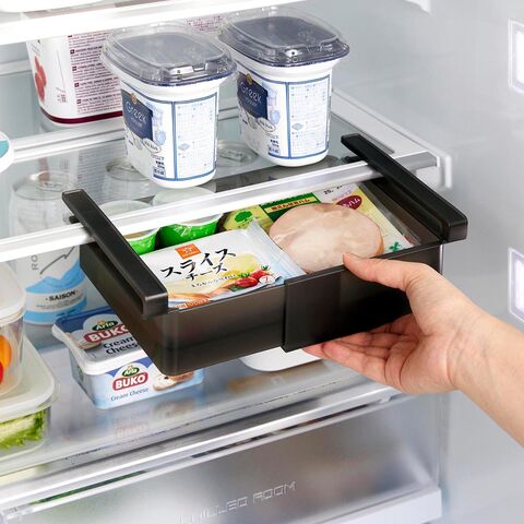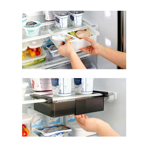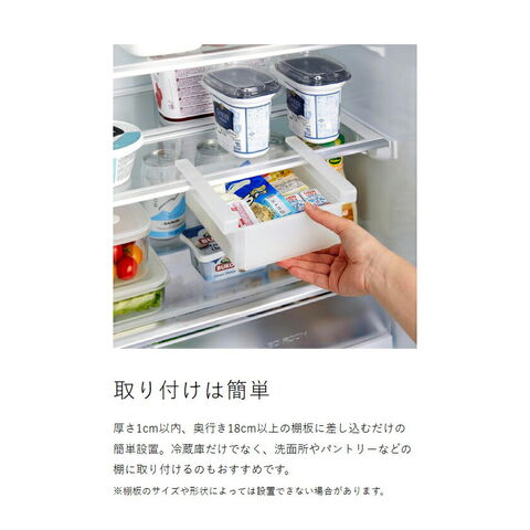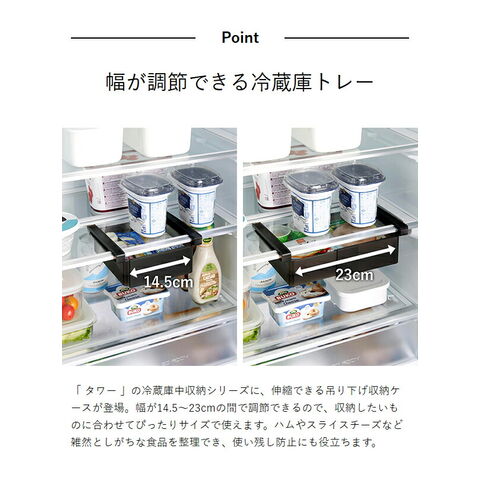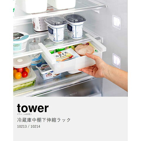 [ 冷蔵庫中棚下伸縮ラック タワー ]山崎実業 tower 冷蔵庫収納 幅 伸縮 吊り下げ 引き出し トレー ラック 整理 キッチン収納 冷蔵庫 隙間 すきま 収納 冷蔵庫収納引き出し 冷蔵庫収納トレー 北欧 おしゃれ yamazaki 公式