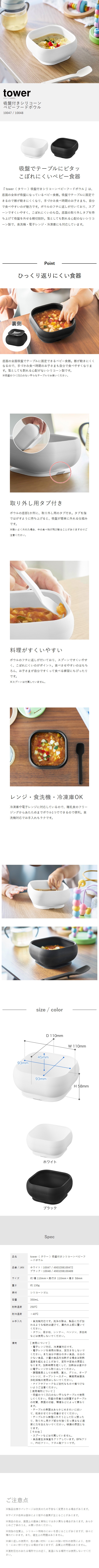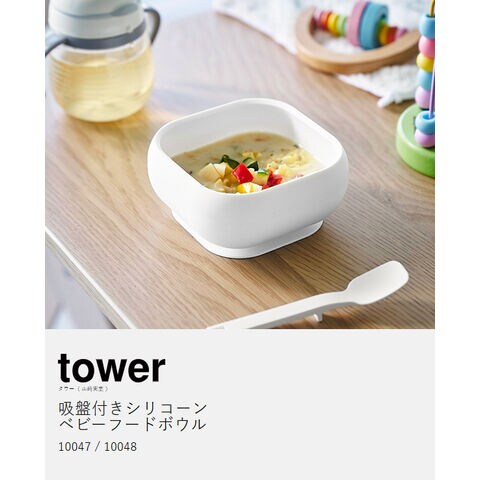 [ 吸盤付きシリコーンベビーフードボウル タワー ]山崎実業 tower ベビー食器 すくいやすい シリコン 吸盤付き 電子レンジ 食洗機対応 離乳食 幼児 子ども 子供 赤ちゃん ボウル 出産祝い おしゃれ yamazaki 公式 モノトーン