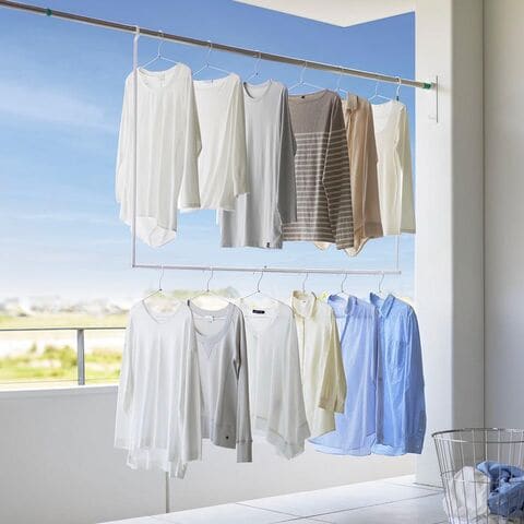 [ 折り畳み伸縮物干し2段ハンガー タワー ]山崎実業 tower 物干しハンガー 部屋干し 室内物干し 室内干し 花粉対策 梅雨 折りたたみ 浴室 バスルーム 洗濯物 衣類収納 省スペース 伸縮 北欧 おしゃれ yamazaki 公式 モノトーン