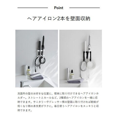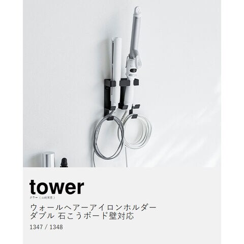 [ ウォールヘアーアイロンホルダー タワー ダブル 石こうボード壁対応 ]山崎実業 tower ヘアアイロン収納 ヘアアイロンホルダー ストレートアイロン カールアイロン 壁掛け 木ネジ 洗面所 yamazaki 公式