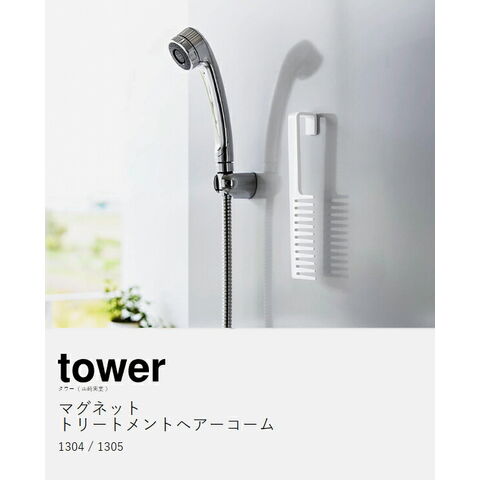 [ マグネットトリートメントヘアーコーム タワー ] 山崎実業 tower トリートメントブラシ 櫛 くし トリートメント バスコーム 髪 お風呂用 ジャンボコーム マグネット 磁石 壁掛け 女性 おしゃれ モノトーン yamazaki 公式