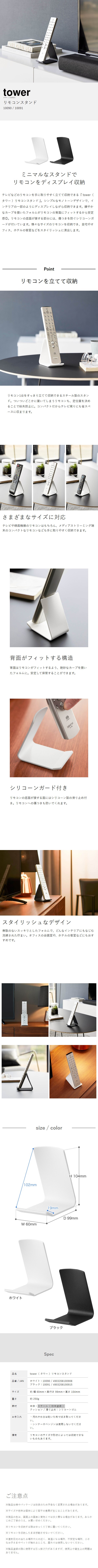 [ リモコンスタンド タワー ] 山崎実業 tower リモコン 収納 テーブル リモコン立て スタンド シンプル リモコンホルダー リモコン置き ホテル 卓上 北欧 おしゃれ モノトーン yamazaki 公式