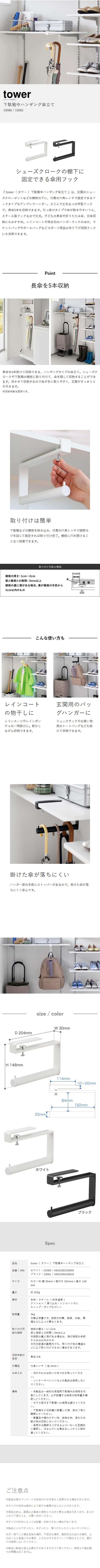 [ 下駄箱中ハンギング傘立て タワー ] 山崎実業 tower 傘立て スリム アンブレラハンガー 傘 掛け 収納 傘掛け かさたて 玄関収納 バッグハンガー かさ 北欧 おしゃれ モノトーン yamazaki 公式