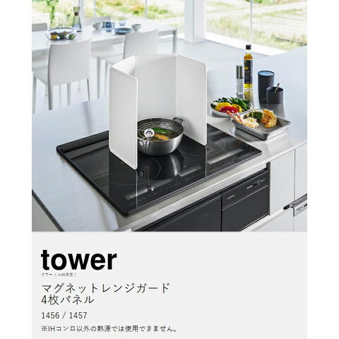 [ マグネットレンジガード タワー 4枚パネル ] 山崎実業 tower レンジガード 油はね防止 IH用 4面 マグネット 磁石 食洗機 油はねガード 油よけ 油跳ね防止 揚げ物 コンパクト おしゃれ yamazaki 公式