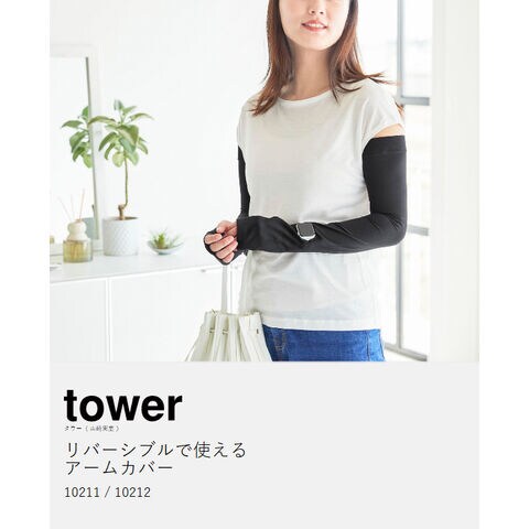[ リバーシブルで使えるアームカバー タワー ]アームカバー 腕カバー ロング丈 UV 紫外線カット リバーシブル 冷感 接触冷感 日焼け対策 日焼け防止 手の甲 夏 yamazaki 公式