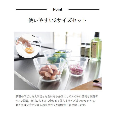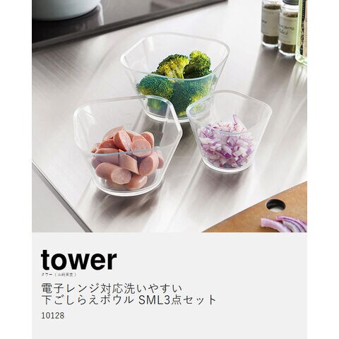 [ 電子レンジ対応洗いやすい下ごしらえボウル タワー SML3点セット ]山崎実業 tower ボウル 計量カップ 日本製 耐熱 電子レンジ対応 レンジok 食洗機対応 食器 スタッキング キッチンボウル 調理器具 250ml 500ml 735ml おしゃれ yamazaki 公式