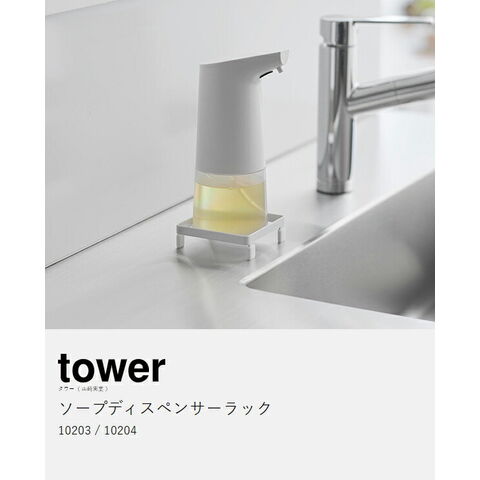 [ ソープディスペンサーラック タワー ] 山崎実業 tower ハンドソープ ディスペンサー スタンド オート 手洗い 洗面所 キッチン 生ゴミ スタンド 牛乳パック おしゃれ モノトーン yamazaki 公式