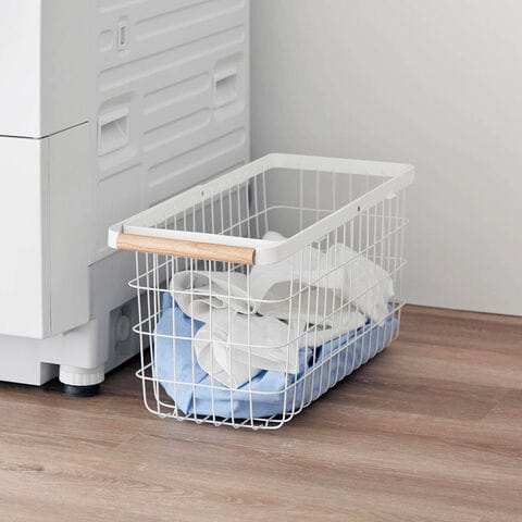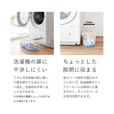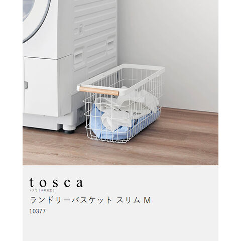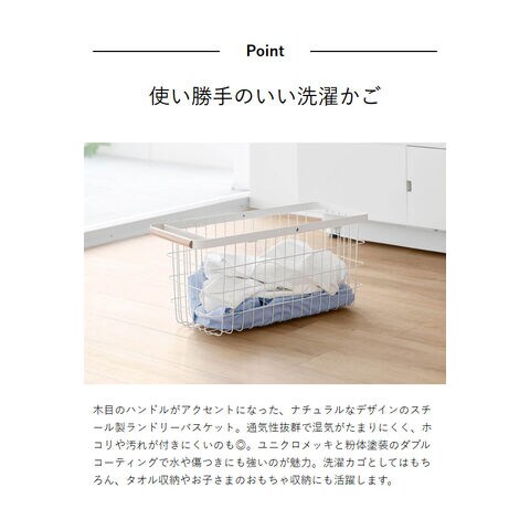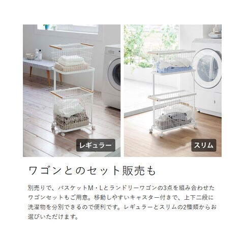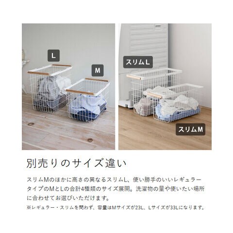 [ ランドリーバスケット トスカ スリム M ] 山崎実業 tosca ランドリーバスケット スリム ワイヤー バスケット 洗濯カゴ 大容量 籠 ランドリー収納 おしゃれ 白 洗濯かご 脱衣かご 木目 北欧 おしゃれ yamazaki 公式