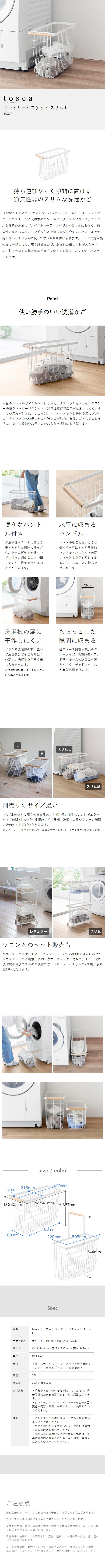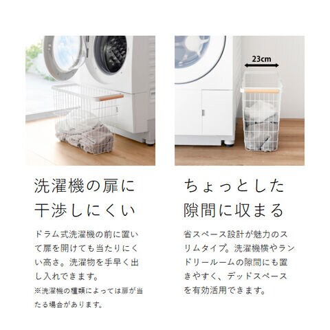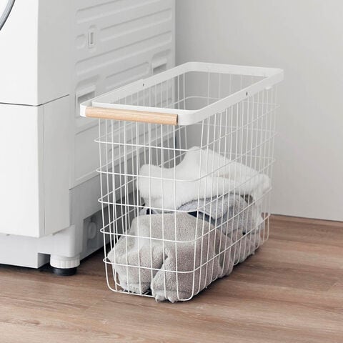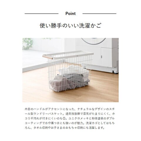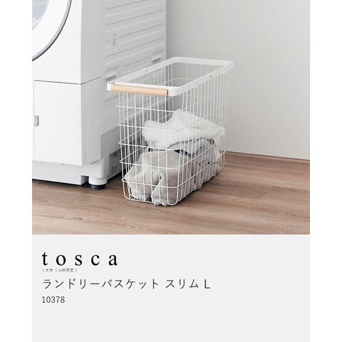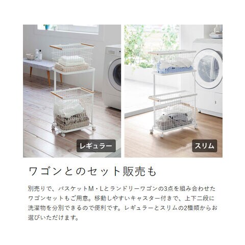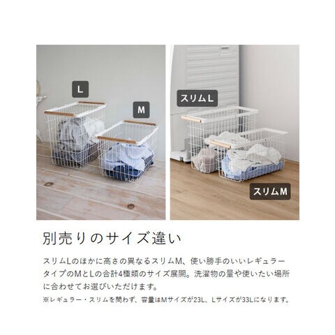 [ ランドリーバスケット トスカ スリム L ] 山崎実業 tosca ランドリーバスケット スリム ワイヤー バスケット 洗濯カゴ 大容量 籠 ランドリー収納 おしゃれ 白 洗濯かご 脱衣かご 木目 北欧 おしゃれ yamazaki 公式