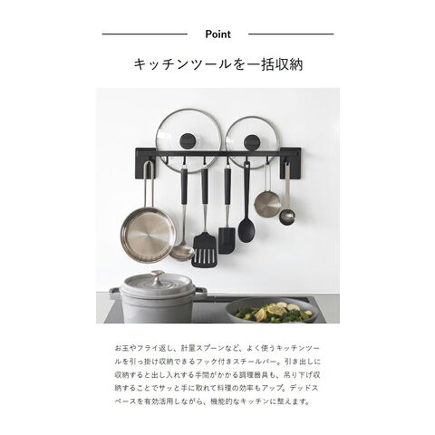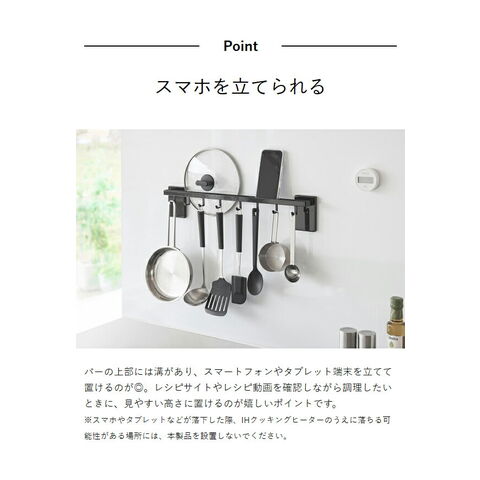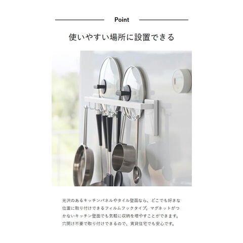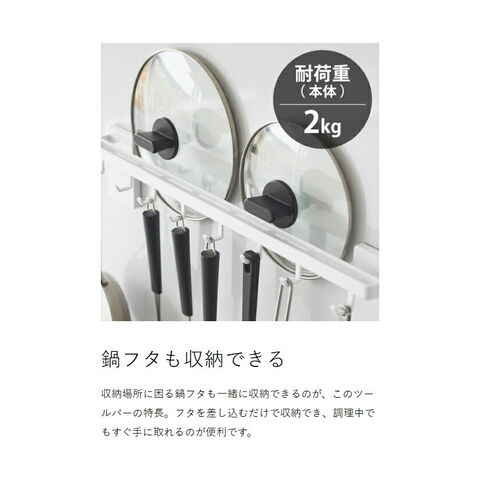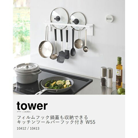 [ フィルムフック鍋蓋も収納できるキッチンツールバーフック付き タワー W55 ] 山崎実業 tower キッチンツール フック キッチン収納 引っ掛け 吊り下げ収納 お玉 おしゃれ モノトーン yamazaki 公式