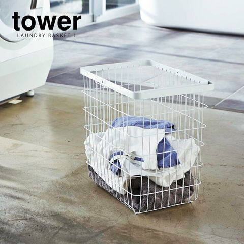 [ ランドリーワイヤーバスケット タワー L ] 山崎実業 tower ランドリーバスケット ワイヤー Lサイズ 北欧 洗濯カゴ 大容量 ランドリー収納 おしゃれ ランドリーボックス ワイヤーバスケット
