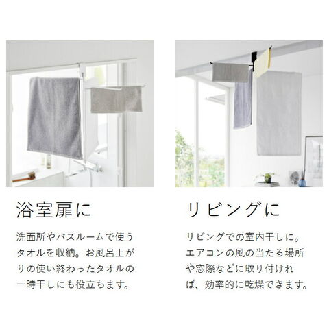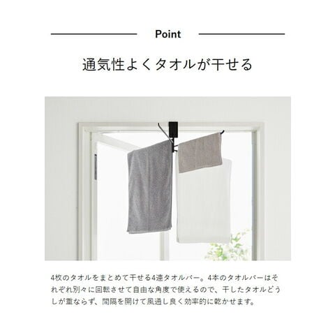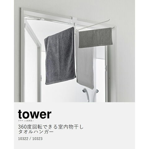 [ 360度回転できる室内物干しタオルハンガー タワー ] 山崎実業 tower タオルハンガー 360度回転 タオル掛け 4枚 バスタオルハンガー 室内干し 部屋干し 鴨居 ドア枠 おしゃれ 浴室 yamazaki 公式