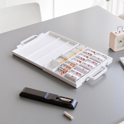 [ ハンドル付きスリム分別電池ケース タワー ] 山崎実業 tower 乾電池ケース 単3 電池 ケース 単4 単2 単1 形 保管 おしゃれ 単3電池 収納ケース 単4電池 入れ 備え 備蓄 防災グッズ yamazaki 公式