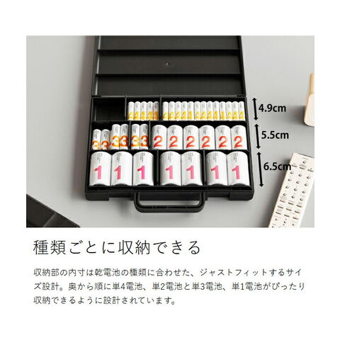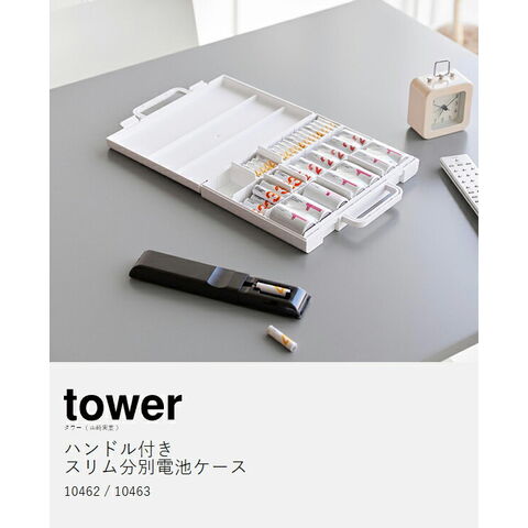 [ ハンドル付きスリム分別電池ケース タワー ] 山崎実業 tower 乾電池ケース 単3 電池 ケース 単4 単2 単1 形 保管 おしゃれ 単3電池 収納ケース 単4電池 入れ 備え 備蓄 防災グッズ yamazaki 公式