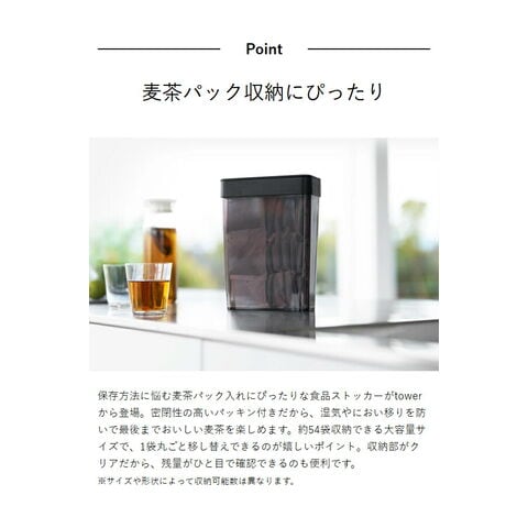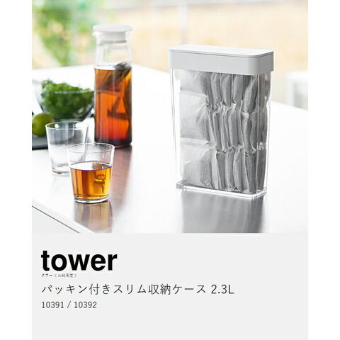 [ パッキン付きスリム収納ケース タワー 2.3L ] 山崎実業 tower 麦茶パック 容器 収納 ストッカー 麦茶パック入れ 密閉容器 調味料 小麦粉 保存容器 スリム 保存 大容量 おしゃれ yamazaki 公式