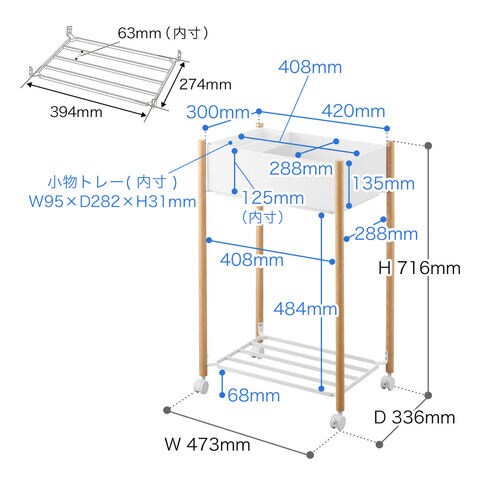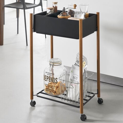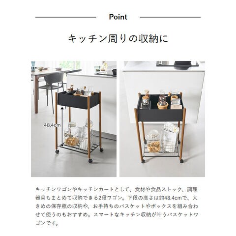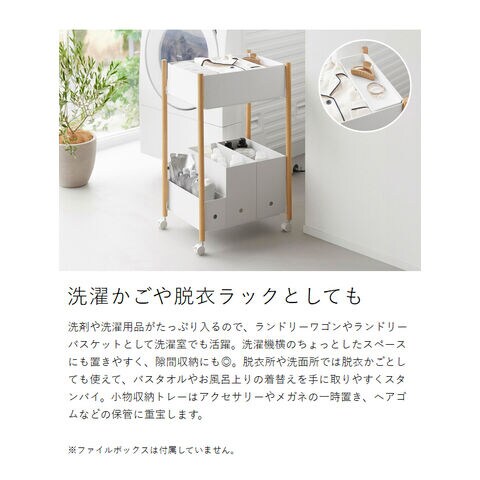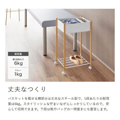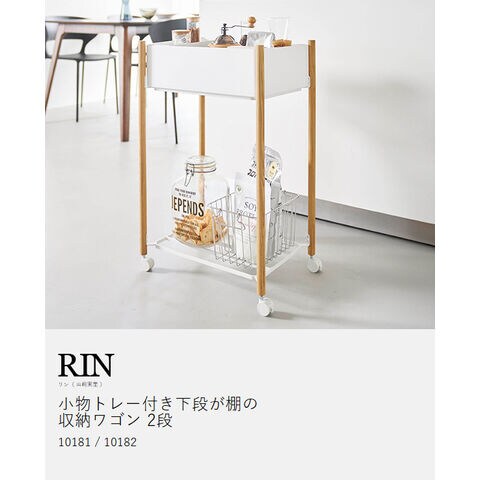 [ 小物トレー付き下段が棚の収納ワゴン 2段 リン ]山崎実業 RIN キャスター付き キッチンワゴン ランドリーワゴン ランドリーバスケット 洗濯かご 洗面所 病院 診察室 待合室 クリニック ワゴン収納 おしゃれ yamazaki 公式
