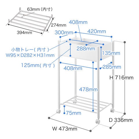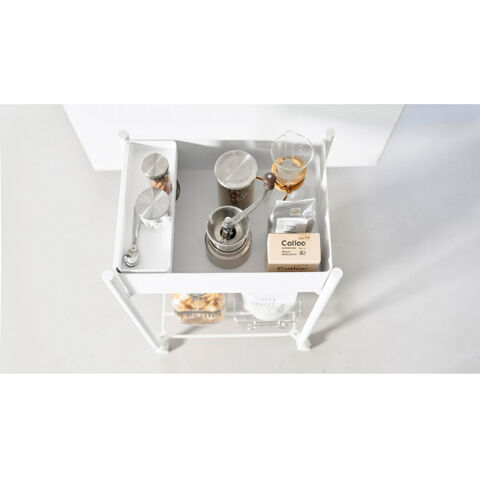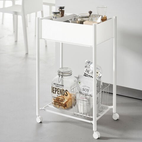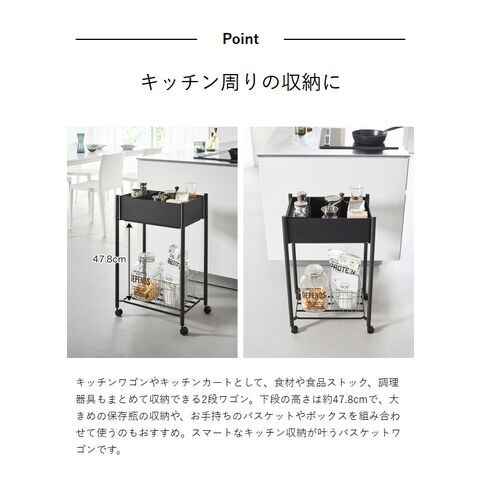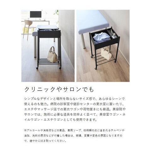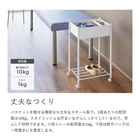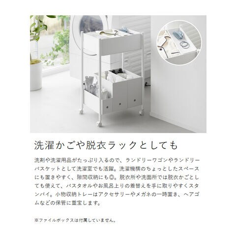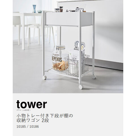 [ 小物トレー付き下段が棚の収納ワゴン 2段 タワー ]山崎実業 tower キャスター付き キッチンワゴン ランドリーワゴン ランドリーバスケット 洗面所 病院 診察室 待合室 クリニック サロン ワゴン収納 おしゃれ yamazaki 公式