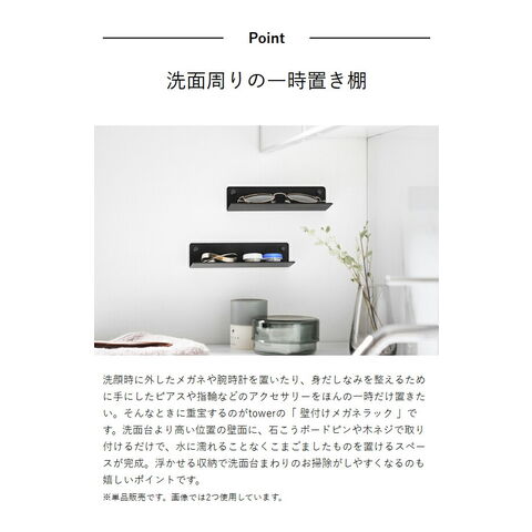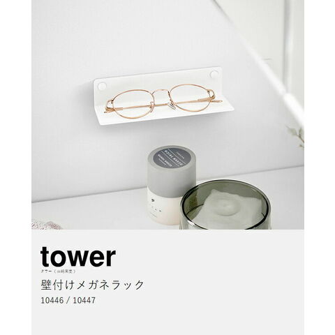 [ 壁付けメガネラック タワー ]山崎実業 tower メガネ置き 眼鏡 収納 壁掛け 飾り棚 壁 スマホ収納 スマホ置き ウォールシェルフ 石こうボード ピン 老眼鏡 洗面所 寝室 ベッド 白 黒 北欧 おしゃれ yamazaki 公式 モノトーン