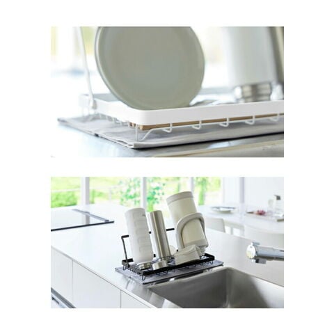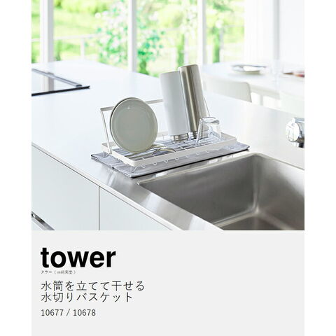 [ 水筒を立てて干せる水切りバスケット タワー ]山崎実業 tower 水切りラック シンク 水筒 水切り 置き 立て 折りたたみ 水切りカゴ 洗い物かご 省スペース スリム 水筒ラック 2L ジャグ 哺乳瓶 水筒スタンド yamazaki 公式