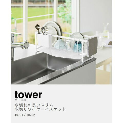 [ 水切れの良いスリム水切りワイヤーバスケット タワー ]山崎実業 tower 水切りかご 水切りラック 水切りカゴ 水切り シンク上 スリム 食器 水筒 キッチン収納 北欧 おしゃれ モノトーン yamazaki 公式