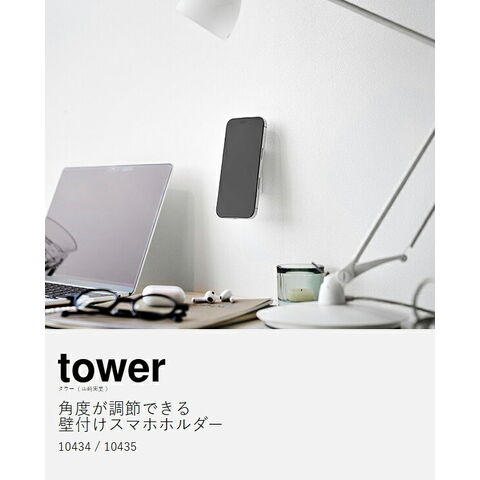 [ 角度が調節できる壁付けスマホホルダー タワー ]山崎実業 tower スマホスタンド スマホホルダー 携帯スタンド 角度調整 壁掛 壁面 寝室 デスク キッチン 石膏ボード 石こうボード MagSafe対応 iPhone yamazaki 公式