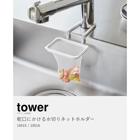 [ 蛇口にかける水切りネットホルダー タワー ] 山崎実業 tower 水切りネット 収納 蛇口にかける 蛇口 掛ける キッチン シンク 水切り ホルダー シンプル 三角コーナーいらず おしゃれ yamazaki 公式