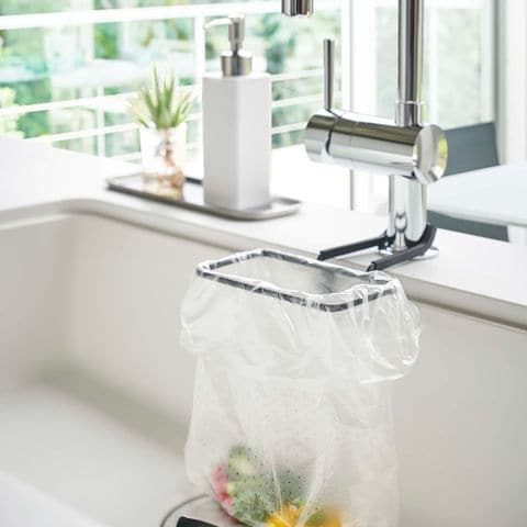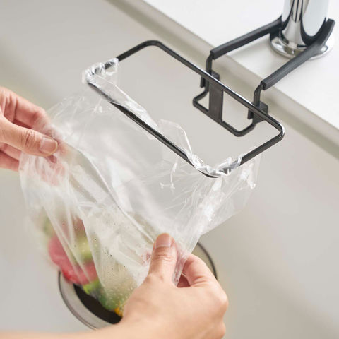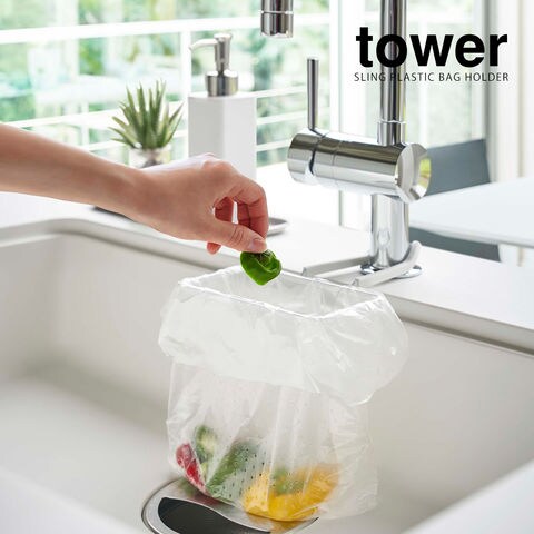 [ 蛇口にかけるポリ袋ホルダー タワー ]山崎実業 tower ポリ袋スタンド ポリ袋 ホルダー 蛇口にかける 蛇口 掛ける キッチン シンク 水切り 収納 シンプル おしゃれ モノトーン yamazaki 公式